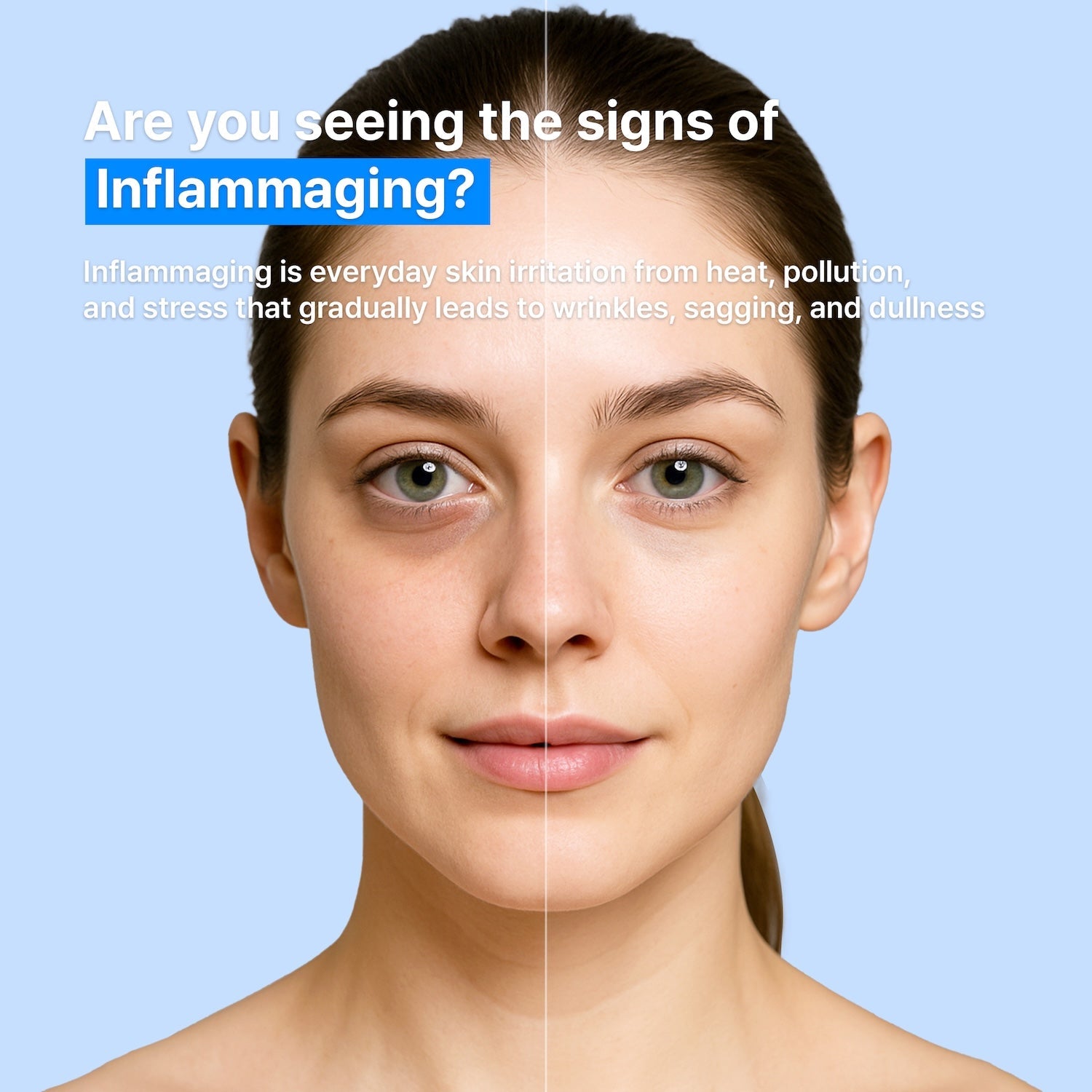 A blue calming first serum that cools and soothes heat-induced sensitivity.